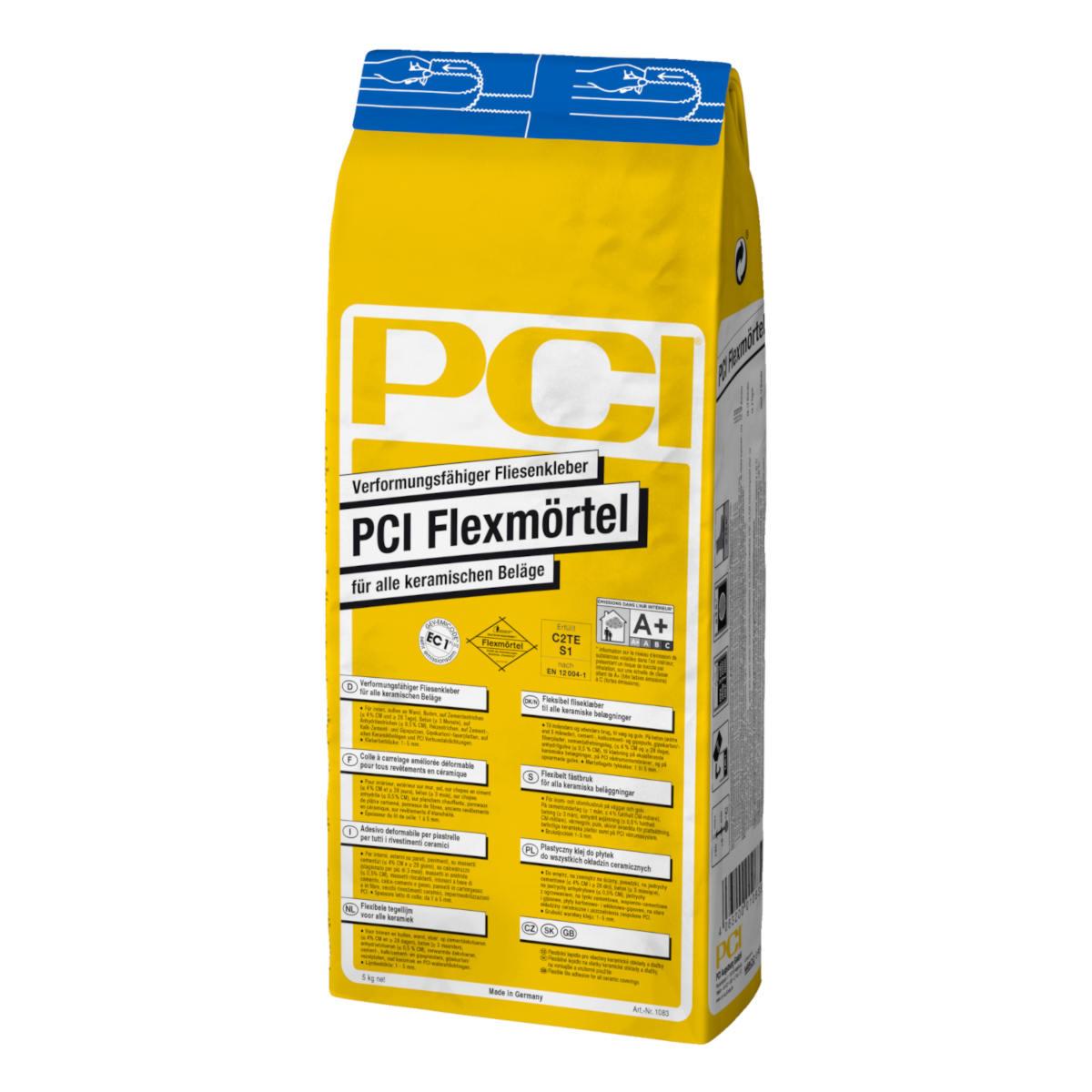 PCI Flexmörtel ist ein verformungsfähiger, zementärer Fliesenkleber zur Verlegung keramischer Beläge im Innen- und Außenbereich. Er eignet sich für Wand- und Bodenflächen und kann für Steingut, Steinzeug, Feinsteinzeug, Klinker, Ziegelfliesen sowie Porzellanmosaik eingesetzt werden. Der Kleber ist wasserfest, temperaturbeständig und gleicht Spannungen aus Untergrundbewegungen sowie Temperaturschwankungen aus. PCI Flexmörtel kann auf Zementestrichen, Beton, Heizestrichen, Gipskarton- und Gipsfaserplatten, Trockenestrichen, Gussasphalt im Innenbereich sowie auf bestehenden keramischen Belägen verarbeitet werden.